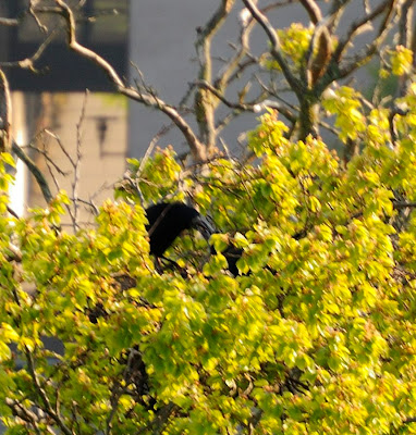 En kråke har reir oppe høyt oppe i et tre..og jeg tar bilde fra 8 etasje i hotellet! |